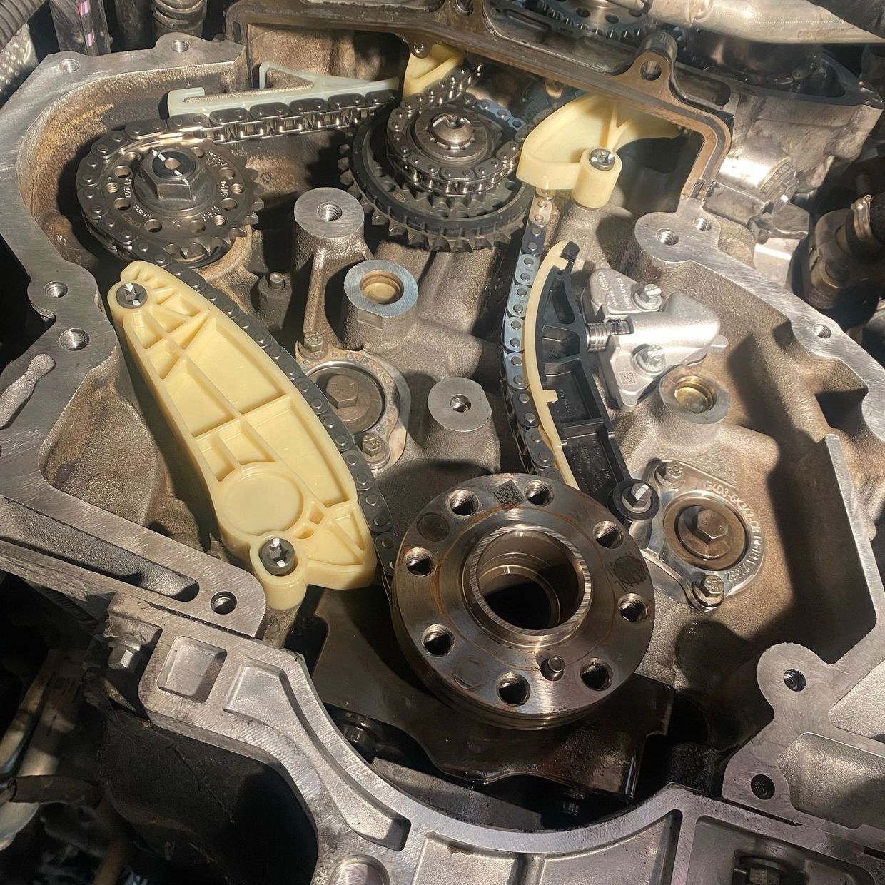 Once this is complete we replace the timing chains with genuine timing chain parts. We then carry out an oil and filter change and reset the oil dilution. If the PCM software requires updating we will advise the customer and update if required. Once complete the vehicle is given an extended road test and final checks complete.